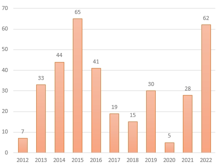 20 Décembre 2022, on peut dire que la saison trail se termine. Voilà donc une dernière mise à jour du listing de CR: https://docs.google.com/spreadsheet [...] share_link (celui qui poste un CR à la con d'une course avec bonnet de noel...ce sera pour 2023 ) Une bonne nouvelle c'est que la production de CR reprend de plus belle post-COVID, avec une année qui fut quasiment la plus prolifique! Nombre de CR/année: https://rehost.diberie.com/Picture/Get/f/124838 A bientot pour d'autres statistiques