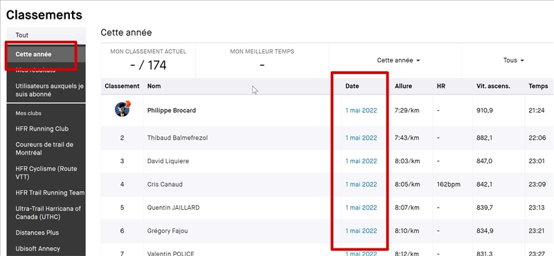 Et dans le classement tu filtre a cette année et tu regardes la date